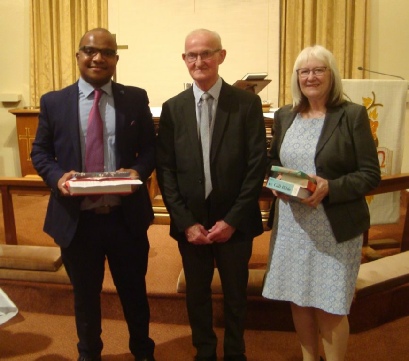 Selorm and Carole with John Best who has just retired after 65 years as a Local Preacher.