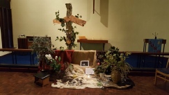 Worship began with the symbolic washing of hands on entry to Church, followed by a meal in the Schoolroom. The food had been prepared by ladies of the Church. After the meal there was a session of songs and readings led by Rev. Clare Stainsby.
